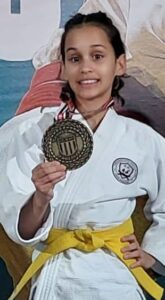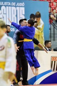 Já Maria Gabriela, na categoria Sub-13 Super Ligeiro, venceu a primeira luta contra judoca de São Paulo e, na segunda, enfrentou uma adversária de Pedreira em um combate acirrado decidido no Golden Score. Na disputa pelo bronze, derrotou com tranquilidade a atleta de Mogi das Cruzes e também subiu ao pódio.