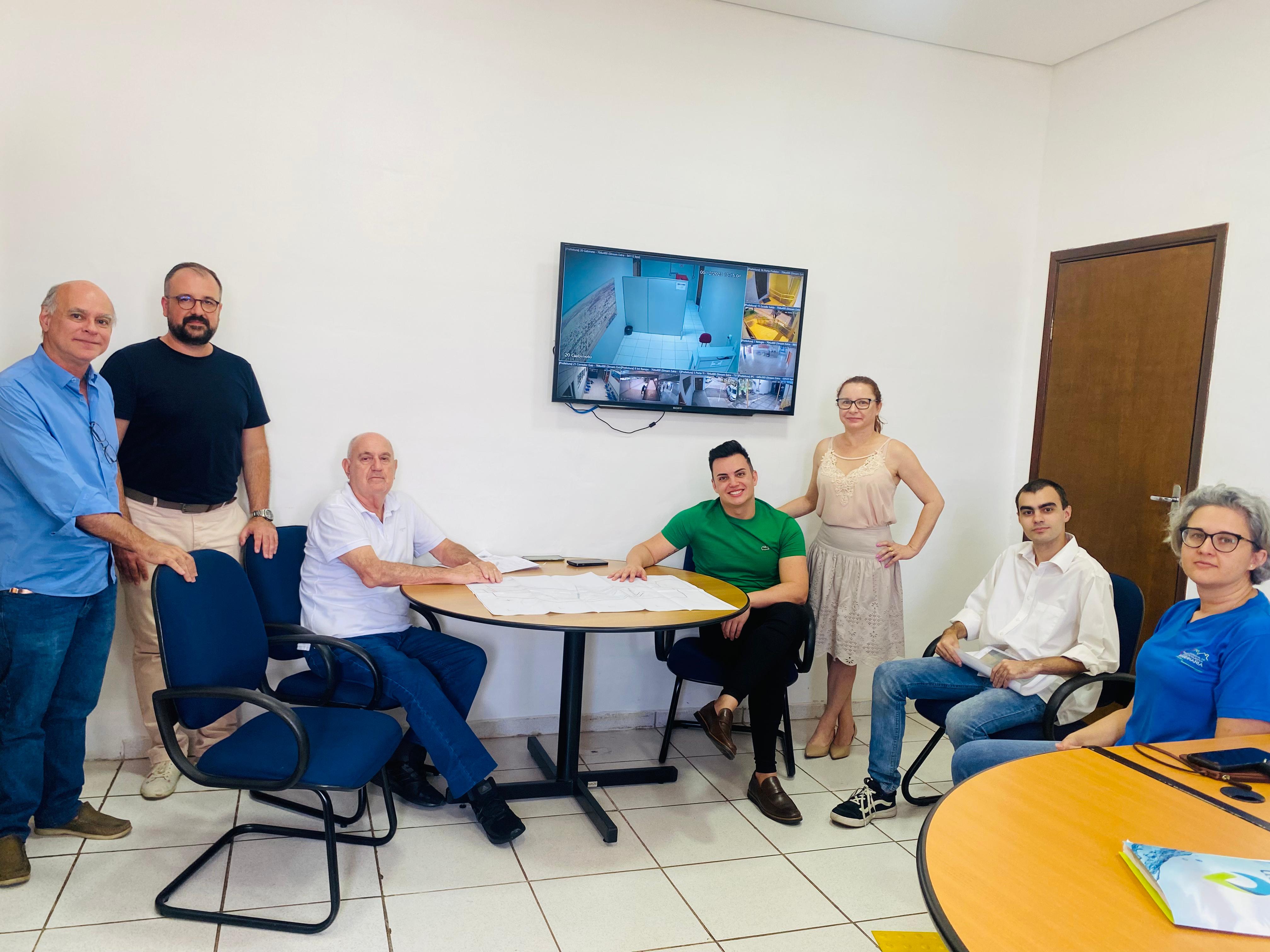Participaram da reunião o prefeito Lucas Sia (PSD), a presidente do Saean Gabriela Montoya; o secretário de planejamento Fernando Arrivabene; o vereador e líder de governo Melinho Tagliari (União Brasil); os engenheiros do DAEE José Augusto Mendes e André da Silva Mendes; e a engenheira Gislene Tagliari – da secretaria municipal de Planejamento.