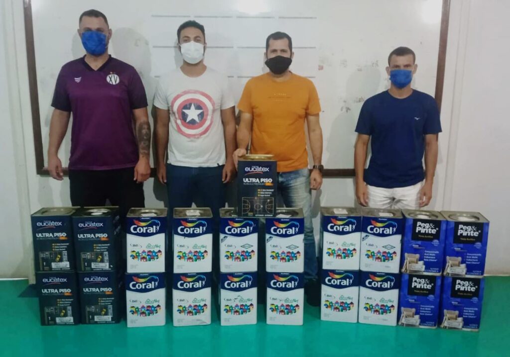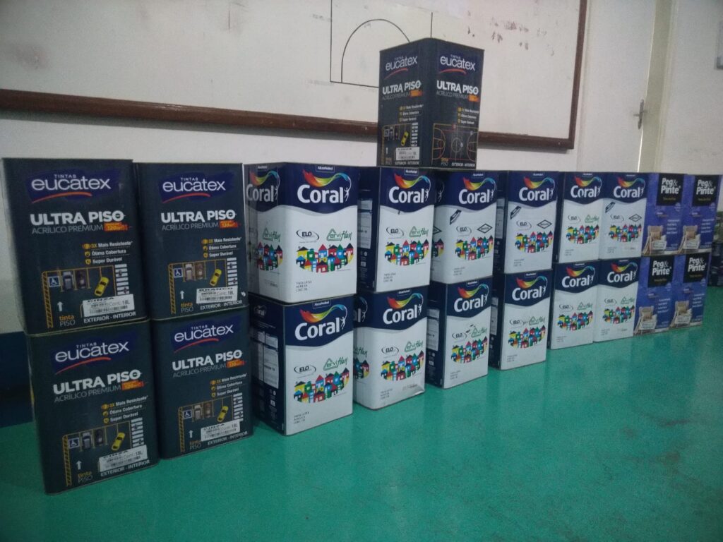 Ao todo, foram doadas 20 latas, sendo 16 de tintas Acrílica de 18 litros e 4 de ultra piso de 18 litros. As tintas foram direcionadas à Secretaria de Esporte e Lazer e, segundo o titular da pasta Caio Rodrigues, serão usadas para pintura de espaços como o Ginásio e Estádio Municipal.
