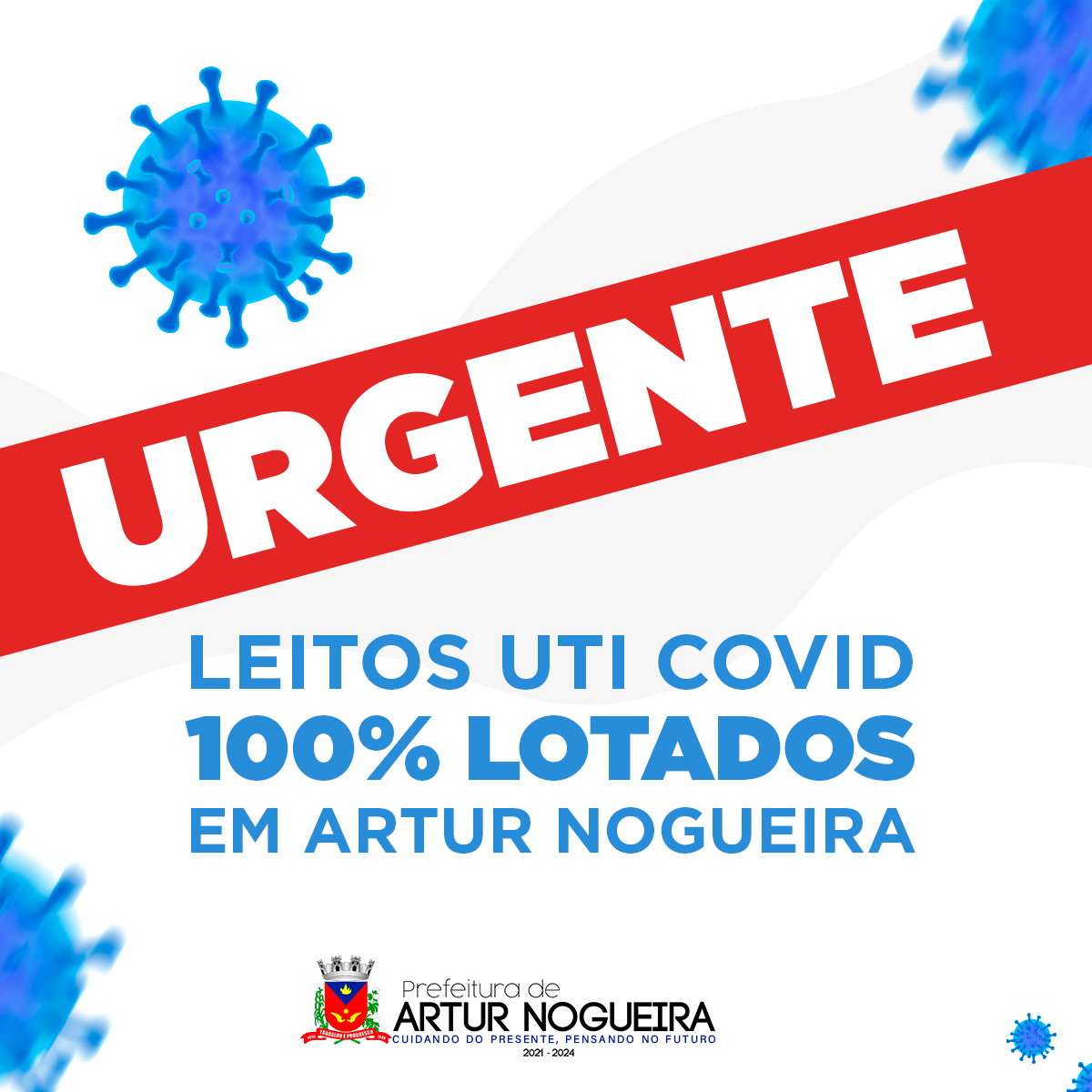 A Prefeitura de Artur Nogueira anuncia que as Unidades de Terapia Intensiva (UTI) Covid estão lotadas no município. Desde o início da pandemia, os pacientes são encaminhados para dois tipos de leitos: os de enfermaria e os de urgência e emergência. As internações são feitas de acordo com as complicações do paciente.